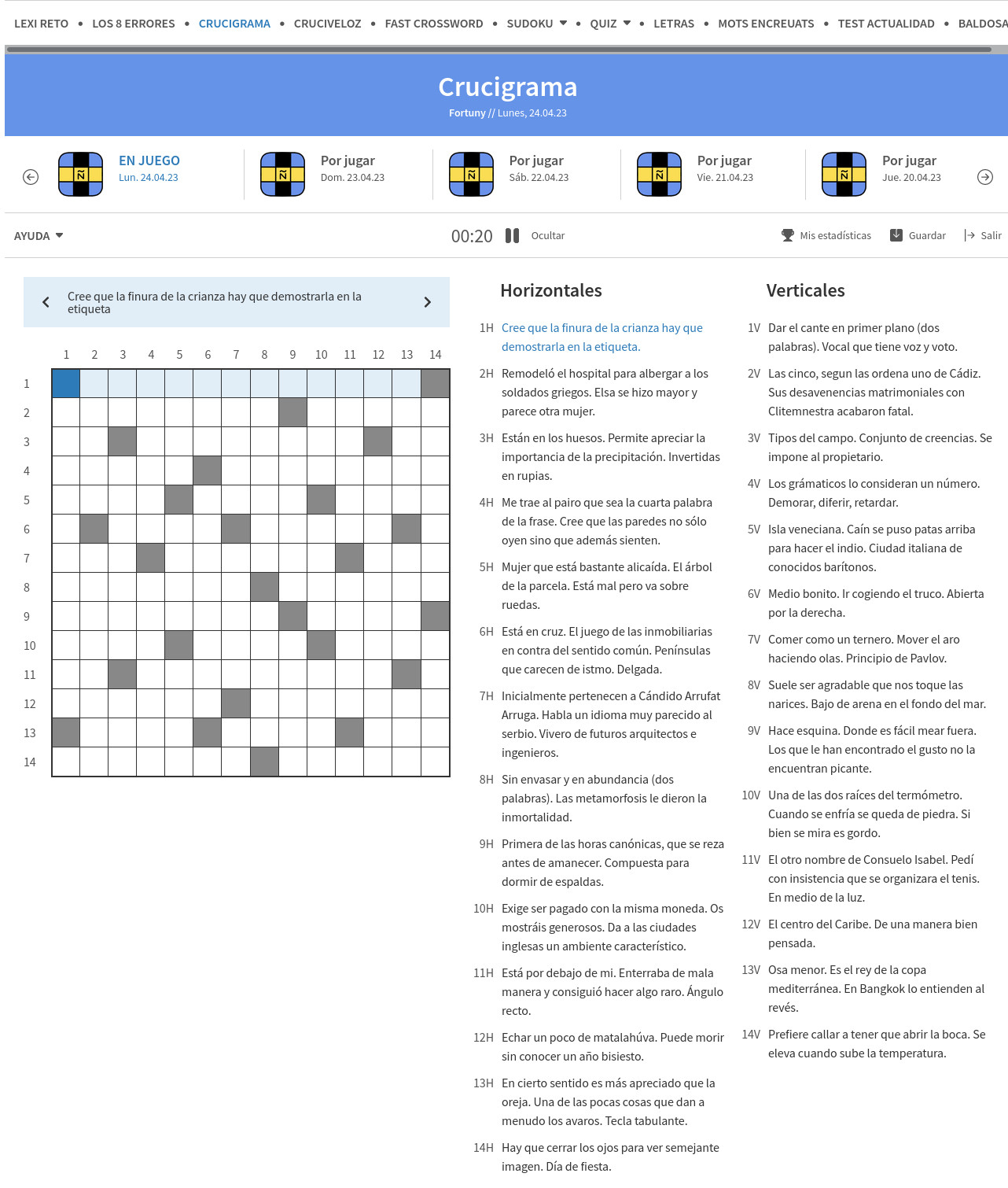 Desarrollo de plataforma de videojuegos tipo pasatiempos: crucigramas, sudokus, diferencias, etc.